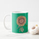 Desenho colorido de lápis esboçado em preto. Girassóis podem ser uma agradável surpresa. Um ano acreditamos que nos deram um presente de um esquilo que jogou uma semente no nosso quintal. Acabamos com um lindo girassol grande para curtir. O esquilo comeu também, então talvez ele tenha feito de propósito. Que esta design nos ajude a apreciar as belas surpresas que acontecem na vida, enquanto você pica nesta caneca.