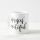 Esta caneca apresenta a frase "bom dia" em um moderno roteiro escrito à mão.