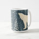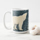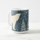 Uma design de arte divertida com um encantador Urso Polar majestoso olhando para o céu noturno ártico, enquanto grandes flocos de neve brancos fluffy caem ao seu redor.