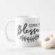 Você vai adorar o bebendo do seu café da manhã a partir desta linda caneca de café estilo fazenda moderna com uma citação cristã escrita à mão: "Simplesmente abençoado" —>> Personalize-o adicionando um nome ou uma mensagem personalizada no verso. *** Para alterar a cor do design ou qualquer texto, clique na opção Personalizar e, em seguida, clique no link "personalizar mais".