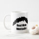 Uma caneca preto e branco engraçada para homens que tenha um bigode peludo grande do espanador do biscoito e dizer real cómico dos homens: Bigode real do homem. Aperfeiçoe para uma cara com um bigode espesso grande.