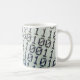 Dígitos binários, zeros e uns. Para todos vocês, geeks e nerd, programadores, matemáticos ou estudantes de ciência da computação por aí, aqui está uma caneca para vocês. Padrão de números binários, agora em um ângulo. Emparelhe-o com a minha outra caneca binária e vocês estão prontos!