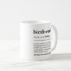 This funny Bird Nerd definition mug features bold black and white dictionary-style typography with a witty bird lover definition. A clean, minimalist text design that’s perfect for birdwatchers, ornithologists, nature lovers, and backyard bird fans. Makes a unique and thoughtful gift for birthdays, holidays, Christmas, or everyday use. Ideal for coffee, tea, or office desks, this design works beautifully for anyone who loves birds, wildlife, and clever word art. You can personalize the text to create a truly unique gift for your favourite birdnerd. Available in multiple mug sizes and styles.
