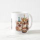 Cães bonitos Pembroke Welsh Corgi vestidos para uma festa de aniversário. Perfeito para cães, pais de cães e amantes de cães pelo seu aniversário.