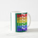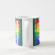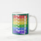 O design de caneca de café que diz "Bisbee" é cor turquesa escura, mas tem tinta branca, vermelha, laranja, amarela, verde, azul e roxa. Ele o torna ideal para café ou chá de manhã. É seguro para micro-ondas e lava-louças.