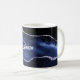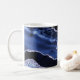 Midnight blue marble, lined with silver glitter, on a black background makes an eye-catching and dramatic mug that's sure to be a favorite.