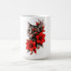 Caneca De Café Black and White Cat with Bright Red Blooms