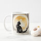 Os gatos negros são algo muito especial, como nós, seus empregados, sabemos. Uma bela foto de um gato preto em frente a um sol. Esta aquarela faz com que sua bebida tenha o sabor normal.
