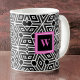Caneca De Café Black Gray White Cubism Neo Geo with Pink Monogram