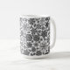 Classic Cup Mug coffee tea beverage drinking container printed with Black And Gray On White Retro Floral Art Seamless Pattern original hand drawn graphic design artwork illustration by TheFabricSeal print on demand shop at Zazzle.com #ZazzleMade ©️Original. https://www.zazzle.com/store/thefabricseal