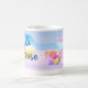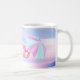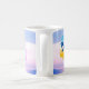 Caneca personalizada em design da Casa de Praia Azul e Rosa com balde de areia e bola de praia.