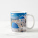 Lindo fotografia dos icônicos cúpulos da igreja azul de Aghioi Theodoroi (Santos Theodore) que podem ser vistos ao longo da beira-chuva da Ilha de Santorini, Grécia.