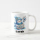 Espalhe a alegria de férias com este personalizado homem de neve azul feliz Sinal de Natal Mug! Esta charmosa caneca de café de Natal apresenta um adorável boneco de neve vestido de chapéu azul e cachecol, segurando uma festiva placa de "Feliz Natal" e uma brilhante varinha de floco de neve. Personalize-o facilmente com qualquer nome para que seja um presente perfeito de Natal, uma saudação calorosa ou uma adição agradável à sua decoração de inverno