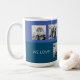 Nós te amamos vovô seis fotos personalizáveis caneca. Dois tons de azul. Filtro preto e branco aplicado a fotos.