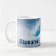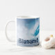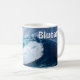 Os democratas tiveram uma enorme onda azul nas eleições de 2018. Desta vez, o vamos faz dele um tsunami azul! "BLUNAMI" escrito em fontes modernas. Texto azul na frente da caneca e branco no verso, ambos com uma leve sombra. Uma linda onda azul que envolve a caneca é o fundo.