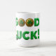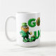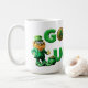 Um Leprechaun engraçado com um terno verde com barba vermelha e uma moeda de ouro na mão lhe dá boa sorte!
