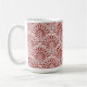 Esta caneca de café apresenta um desenho de arte desenhado à mão ou um padrão de ventoinha com uma textura vintage angustiada em vermelho sobre creme para uma aparência boêmica.