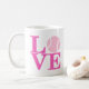 Um design do AMOR do pop art com uma bola de tênis cor-de-rosa para o O no AMOR
