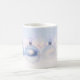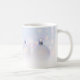 Uma caneca com uma design mágica de Natal. Condecorações de árvores de Natal juntas em uma neve branca. O fundo tem um padrão branco (luzes desfocadas) com flocos de neve em queda. Captura perfeitamente a maravilha e a magia do Natal.