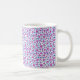 Esta linda caneca de café colorida apresenta um padrão de pontos em azul claro e pinks. Perfeito para um café relaxado e um presente adorável para o Dia das Mães