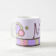 Isto é feminino ou o quê? bolinhas e listras lilás, verdes e cor-de-rosa enquadram o atraente monograma castanho no centro desta design. Um presente personalizado de excelente para o amante do café ou do chá.