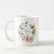 Uma menina adorável, uma caneca rosa-claro, rosa e branca com bolinhas. Pintado, cor d'água, coroa floral com monograma, nome e data de nascimento da opção. Faz um presente perfeito para, mãe, Natal, chá de fraldas, aniversariante... uma adorável decoração personalizada para o berçário! Faz um excelente de manutenção!