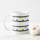Formas geométricas coloridas monogramas com listras pretas. Bolinhas coloridas, cor-de-rosa, amarelas, azuis turquesas e negras estão dançando para um novo olhar moderno. Personalize com seu texto Inicial ou outro, ou exclua a caixa de texto para deixar o vazio. Formas circulares brilhantes de moda fresca para o prato da cozinha de primavera ou verão. Design de arte original © TamiraZDesign. www.zazzle.com/tamirazdesigns
