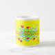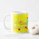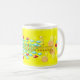 Caneca decorada alegremente em cores vivas e vivas com bolhas e corações e raios de luz para começar o dia no seu melhor humor