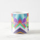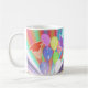 Uma caneca de café com meu design de listras coloridas, balões e bonés de formatura.