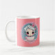 Uma boneca do estilo kawaii adorável sentada numa xícara de chá. Design perfeito para crianças e adultos em muitos produtos de moda! Personalize sua cor de fundo ou adicione texto!