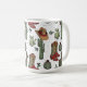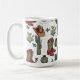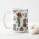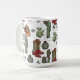 Este festivo cowboy bota de café no país apresenta ilustrações desenhadas à mão de botas de Natal, chapéus, mitenes, cactos, groselhas e estrelas, todas sobre um fundo branco elegante.