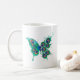 Caneca De Café Borboleta com Penas de Pavão Verde