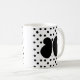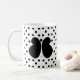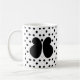 Tumba de café com borboleta Bolinhas preta. Pequenas bolinhas pretas e borboletas pretas e fofinhas em fundo branco. Bom padrão feminino moderno.