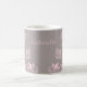 Mug Floral de Borboleta Doce e Atmosca-da-Duna com fundo de cinza empoeirado e borboletas de rosa claro e talhos de vinha florais. Esta elegante caneca floral é perfeita para o bebendo da sua bebida quente favorita com um toque de esférula. Fácil de personalizar, basta adicionar o texto personalizado de sua escolha nos campos de texto fornecidos. Clique no botão "Personalizar a TI" para encontrar opções adicionais de personalização.