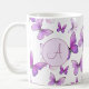 Caneca De Café Borboletas De Pastel Roxo-Girly Monograma Personal