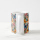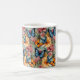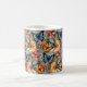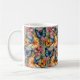 Borboletas azuis e laranja e flores no estilo impressionista fazem uma bela caneca de café que é perfeita para qualquer um que ama flores e natureza.