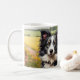 Borda Collie na Fazenda com celeiro e flores. Trabalhando, parelhando cães fazendas. Adicionar esta imagem a outros produtos. Adicione seu próprio texto também. Alterar a cor de fundo.