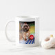 A caneca é de excelente qualidade, de bom peso e aparenta resistentência. O tamanho grande da caneca de 444 ml é muito prático, ela serve até para sobremesas. A alça é do tamanho certo para empunhadura, e oferece grande firmeza. A impressão ficou perfeita, a imagem ficou completamente nítida, e as cores vivas como na imagem do site.