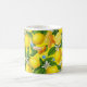 Brighten your morning routine with this uniquely designed lemon and vitamin botanical mug. This eye-catching pattern features a lush, maximalist illustration of zesty yellow lemons, delicate white blossoms, and deep green leaves, artfully mixed with colorful supplement capsules and tablets.