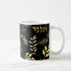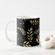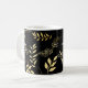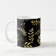 Caneca De Café Botânico Preto e Dourado Glam Folhas Florais Chic