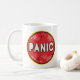 O design do Botão de Pânico mostra um botão vermelho grande com a palavra "Pânico". Já é hora de pressioná-lo? Gráfico divertido para momentos em que pressionar o botão Pânico é a resposta óbvia.