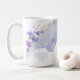 Esta elegante coleção de casamento usa uma paleta colorida impressionante, incluindo o periwinkle, a ameixa e o blues macio para criar papelaria e material de festa correspondentes para o seu dia especial. Os florais de aquarelas e os traçados de tinta cintilantes proporcionam um fundo de captura de olhos. A caneca de café, mostrada aqui para uma dama de honra, também pode ser usada para qualquer outro membro importante da festa de casamento. É fornecido um modelo para adicionar facilmente um nome pessoal e um título de festa de casamento juntamente com a data do seu casamento. Procure ID940 para ver todos os produtos neste conjunto de casamento.