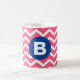 Caneca De Café Bright Pink and White Chevron Pattern Monogram