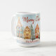 Uma fileira encantadora de casas de pão de gengibre esta engraçada caneca de Natal. O quadro alegre de aquarela é de origem antiga. A cena de inverno nevado inclui "Feliz Natal" na coordenação de um roteiro marrom vermelho que você pode editar. Certifique-se de editar os nomes "de" e também a data neste presente de feriado personalizado.