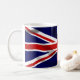 Esta caneca de café é mostrada com uma impressão de bandeira britânica. Personalize este item ou comprar como está. Imagem do stock