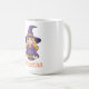 Esta é uma linda e personalizável caneca de Halloween que apresenta uma linda bruxa loira de roupas roxas. Você pode personalizar o nome padrão "samantha".