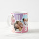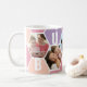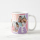 Caneca de café de mel, personalizada com 5 de suas fotos favoritas e impressa com 5 letras, como BUBBE. A design apresenta uma colagem de fotos em favos de mel em uma paleta colorida de sorvete de verão de rosa lilás e pêssego. Se quiser alterar as cores, clique em "personalizar mais" e clique em cada hexágono que deseja alterar.