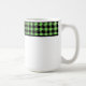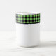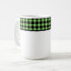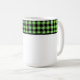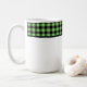 This ceramic coffee mug is shown with a lovely black and lime color buffalo plaid.