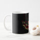 Caneca de café elegante e sofisticada com belas flores burgundy e algumas folhas douradas elegantes.
