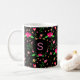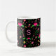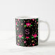 Caneca De Café Busy Floral Pattern on Black Monogram